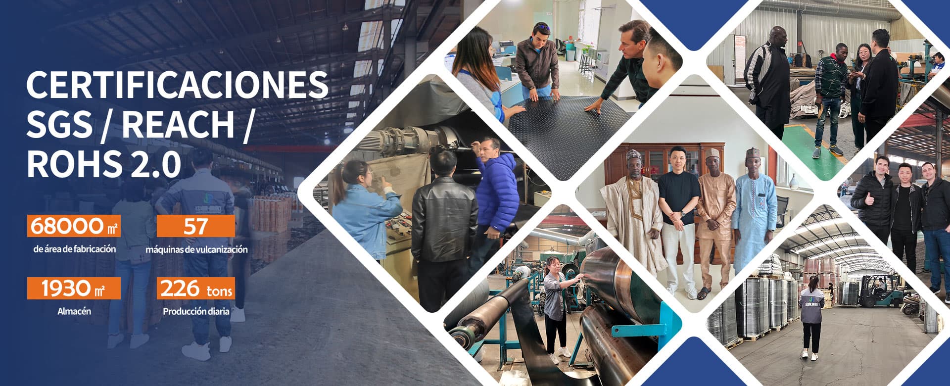 a warehouse area of 1930sqm, 56 drum curing presses, 170 technical staff.  Our main produce rubber sheets and rolls. As a rubber sheet manufacturer and